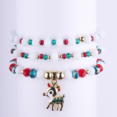 ¡Deja que tu espíritu festivo brille con el set de pulseras Reno Luminoso! Un diseño elegante y divertido que equilibra la pureza de los cristales blancos con los destellos vibrantes del rojo y el verde. El encantador dije de reno dorado, con detalles en esmalte y pedrería, es un toque juguetón y chic. Estas pulseras elásticas son el accesorio imprescindible para cenas navideñas, posadas o como un regalo memorable.